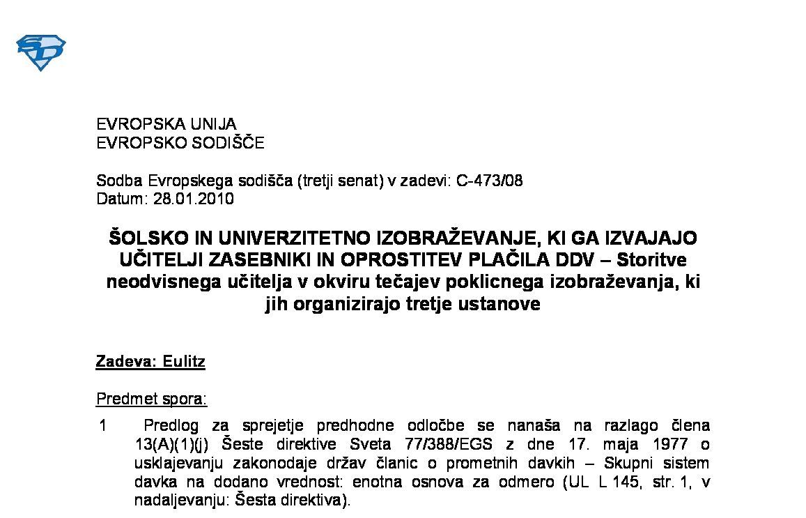 BREZPLAČNA PRAVNA POMOČ, KI JO ODVETNIK ZAGOTOVI STRANKI V SODNEM POSTOPKU – PLAČILO NAGRADE TEGA ODVETNIKA S STRANI PORAŽENE NASPROTNE STRANKE – Transakcije, ki so predmet DDV – Opravljanje storitev za plačilo (C-744/23) 23.10.2025 29.10.2025