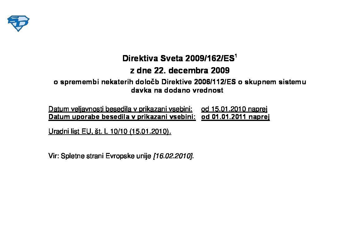 Članek nima posebnosti! Direktiva Sveta 2009-162-EU z dne 22. decembra 2009 o spremembi nekaterih določb Direktive 2006-112-ES.pdf