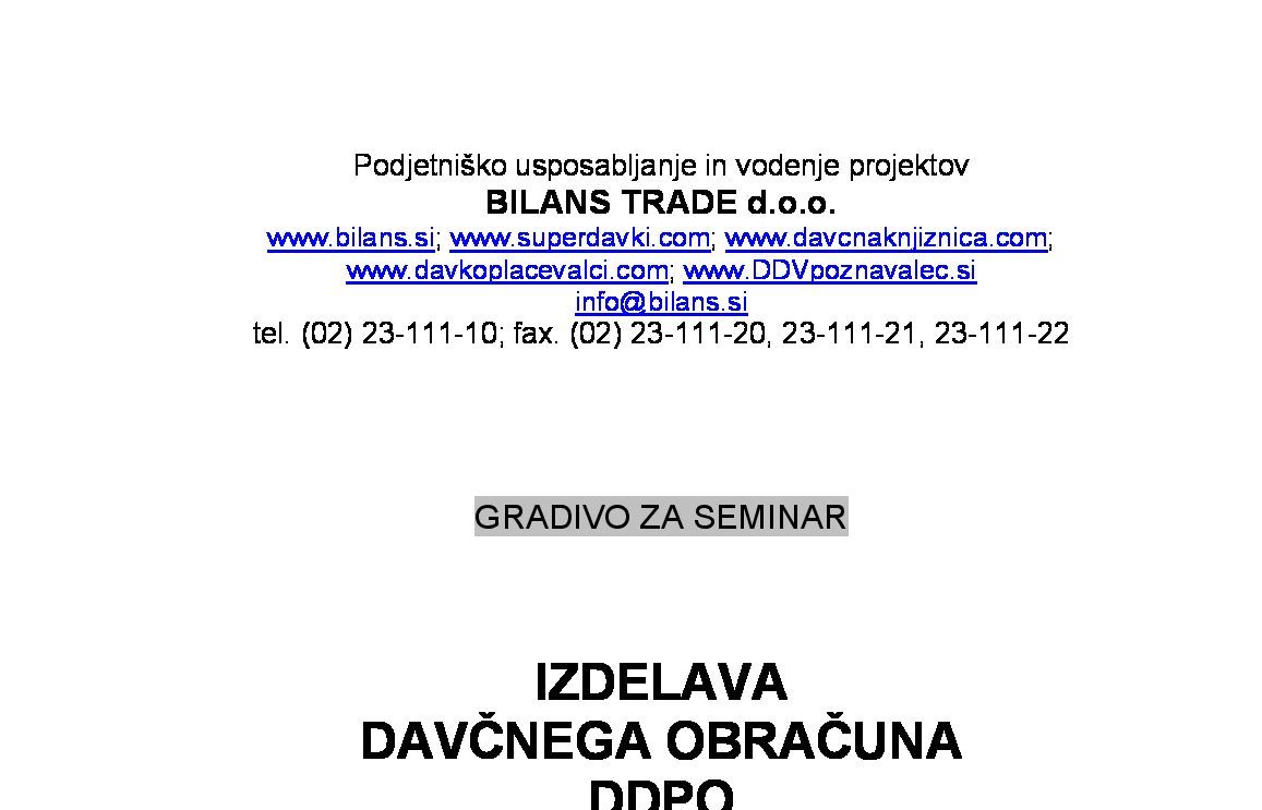 Mali in Veliki DOHODNINSKI MARATON 2018 - delno gradivo iz izobraževanja (tema A, B in C) 24.12.2018