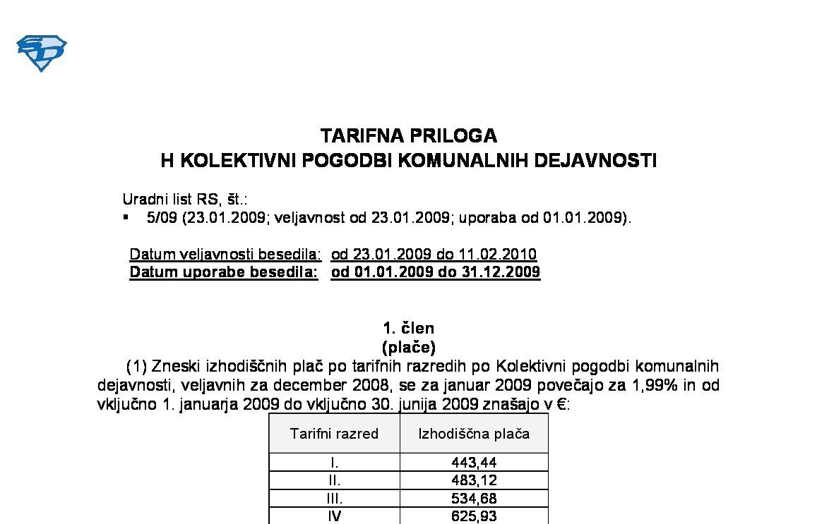 37.0 KOLEKTIVNA POGODBA ZA DEJAVNOST OBVEZNE SOCIALNE VARNOSTI - TARIFNI DEL 31.01.2026 09.02.2026