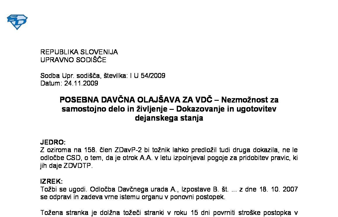 OPRAVLJANJE DEJAVNOSTI S SKRAJŠANIM DELOVNIM ČASOM ZARADI STARŠEVSTVA – Ugotavljanje davčne osnove z upoštevanjem normiranih odhodkov in izpolnjevanje pogoja obvezno zavarovane vsej ene osebe za polni delovni čas (I U 1630/2022-15) 13.11.2025 13.11.2025