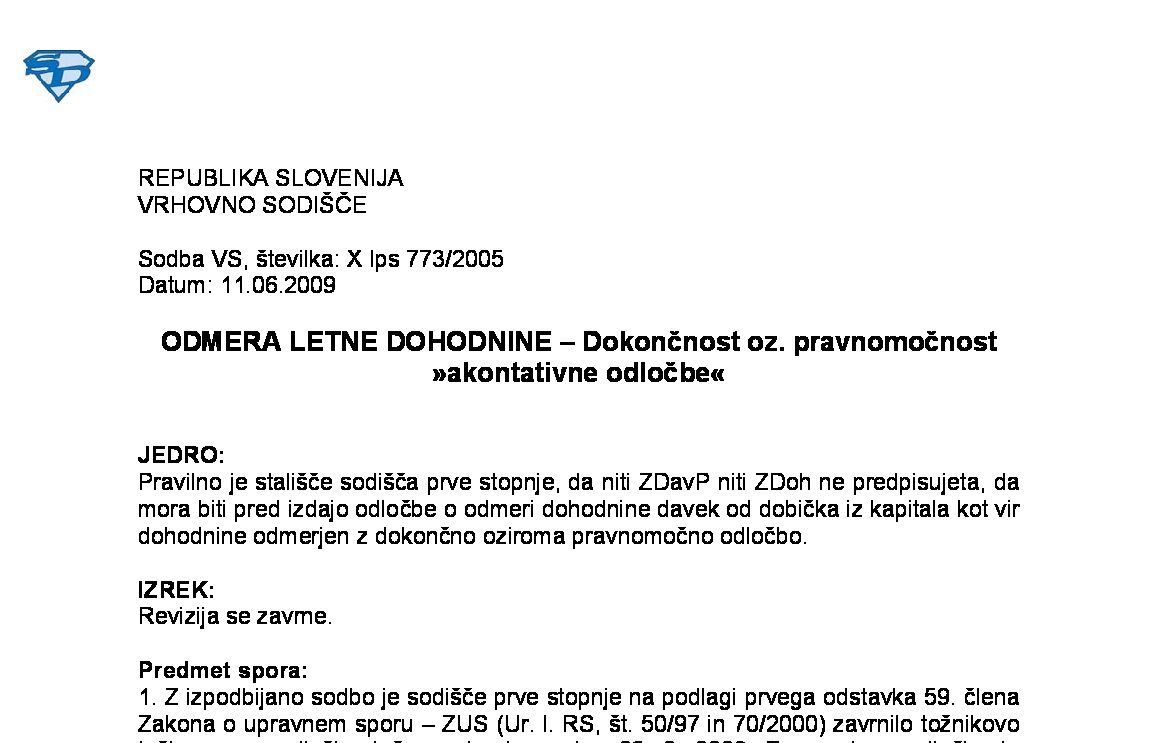 ODLOG UGOTAVLJANJA DAVČNE OBVEZNOSTI – Samoprijava (X Ips 31/2023) 02.10.2024 06.11.2024