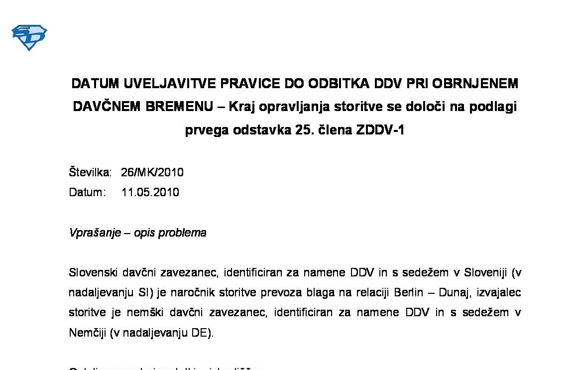 SLOVENSKI DAVČNI ZAVEZANEC OPRAVI STORITEV SEČNJE DREVES (GOZDA) NA OZEMLJU SLOVENIJE HRVAŠKEMU DAVČNEMU ZAVEZANCU – Določitev kraja opravljanja storitev skladno z določili ZDDV-1 25.11.2025 25.11.2025