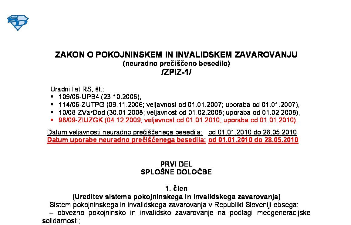 ZAKON O POKOJNINSKEM IN INVALIDSKEM ZAVAROVANJU (ZPIZ-2 - neuradno prečiščeno besedilo) 01.12.2025 [!] 31.12.2025 04.08.2023