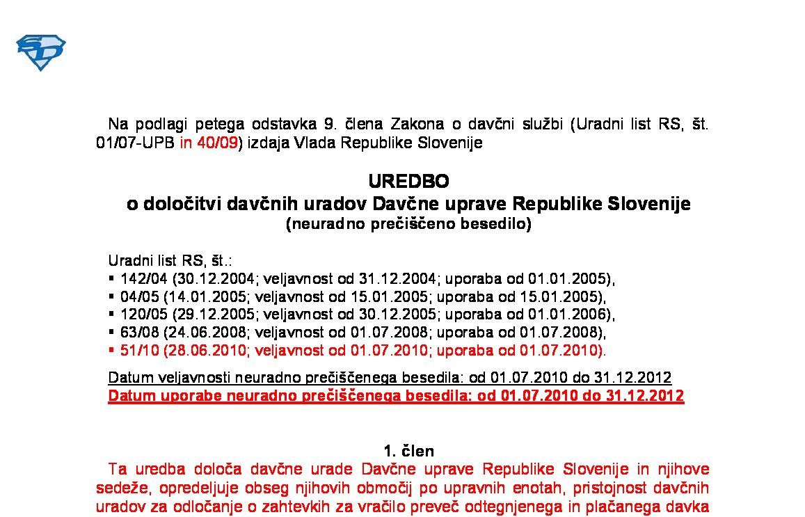 Uredba o določitvi finančnih uradov Finančne uprave Republike Slovenije 22.03.2025 10.03.2025