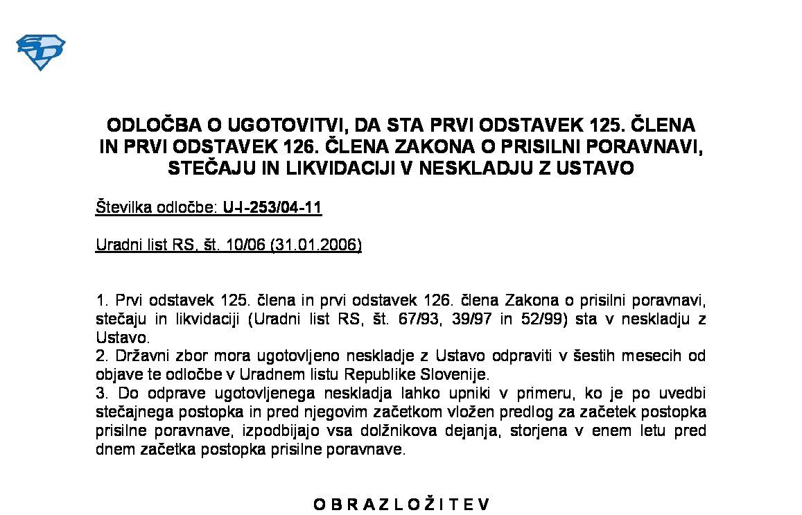 Odločba Ustavnega sodišča - 2. alineja 2. točke drugega odstavka 399. člena v zvezi z 2. točko prvega odstavka in drugim odstavkom 401. člena ZFPPIPP (16.12.2022) 01.12.2022 20.12.2022