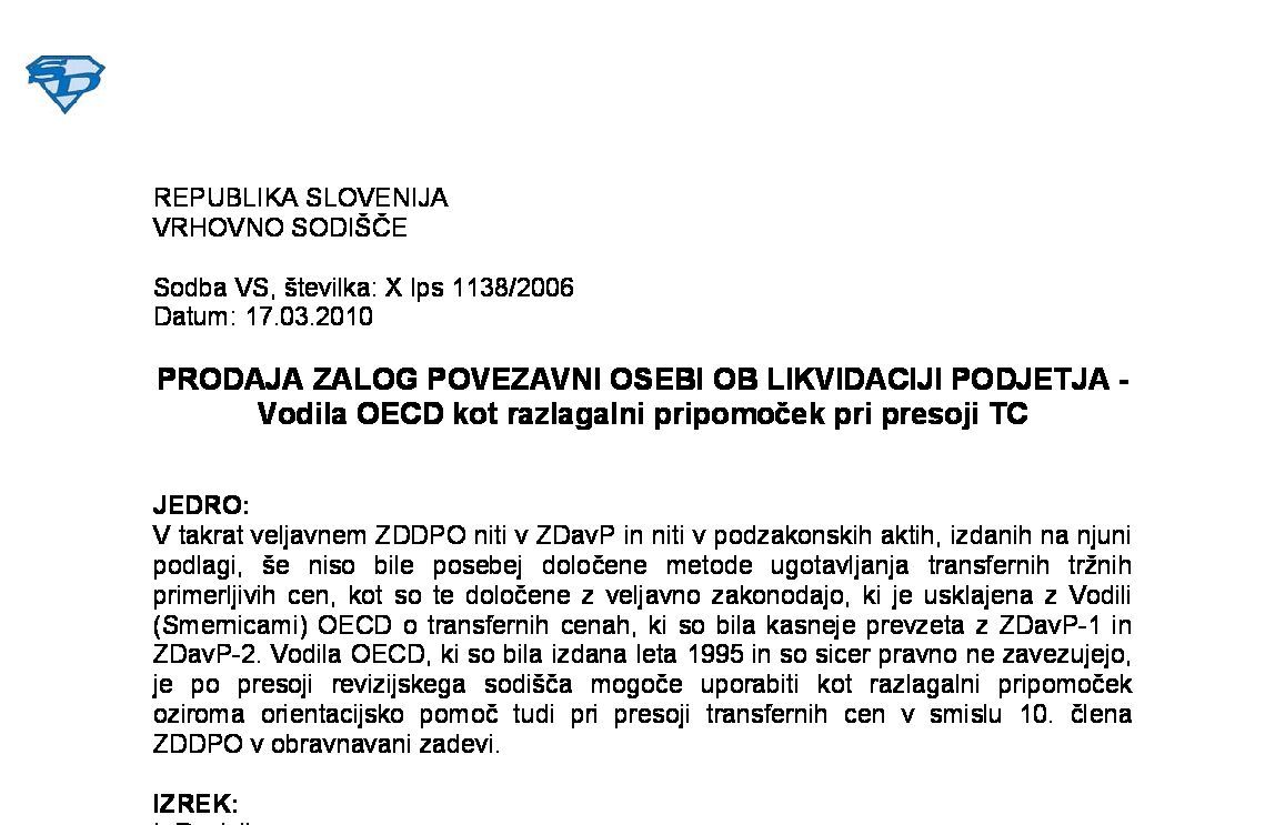 TRANSFERNE CENE MED POVEZANIMI OSEBAMI – Obresti od (presežka) posojil – Dokazovanje – Patronatska izjava (X Ips 74/2020) 09.03.2022 05.05.2022