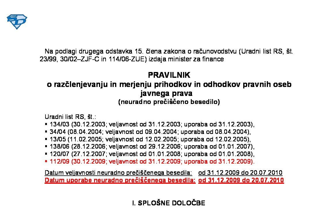 Pravilnik o razčlenjevanju in merjenju prihodkov in odhodkov pravnih oseb javnega prava (NUPB - neuradno prečiščeno besedilo) 09.03.2024 12.03.2024
