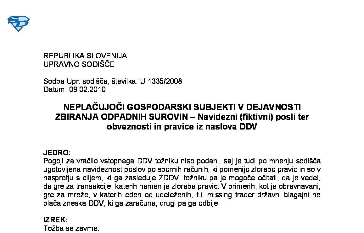 IZPOLNJEVANJE POGOJEV ZA DOBAVO BLAGA ZNOTRAJ UNIJE, OPROŠČENO PLAČILA DDV NA PODLAGI 46. ČLENA ZDDV-1 – Nepopolne CMR listine (I U 1704/2021-38) 27.11.2024 15.10.2025