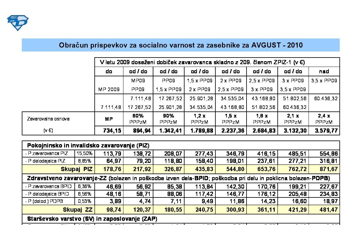 Obračun prispevkov za socialno varnost za zasebnike za JULIJ - DECEMBER 2025 22.07.2025