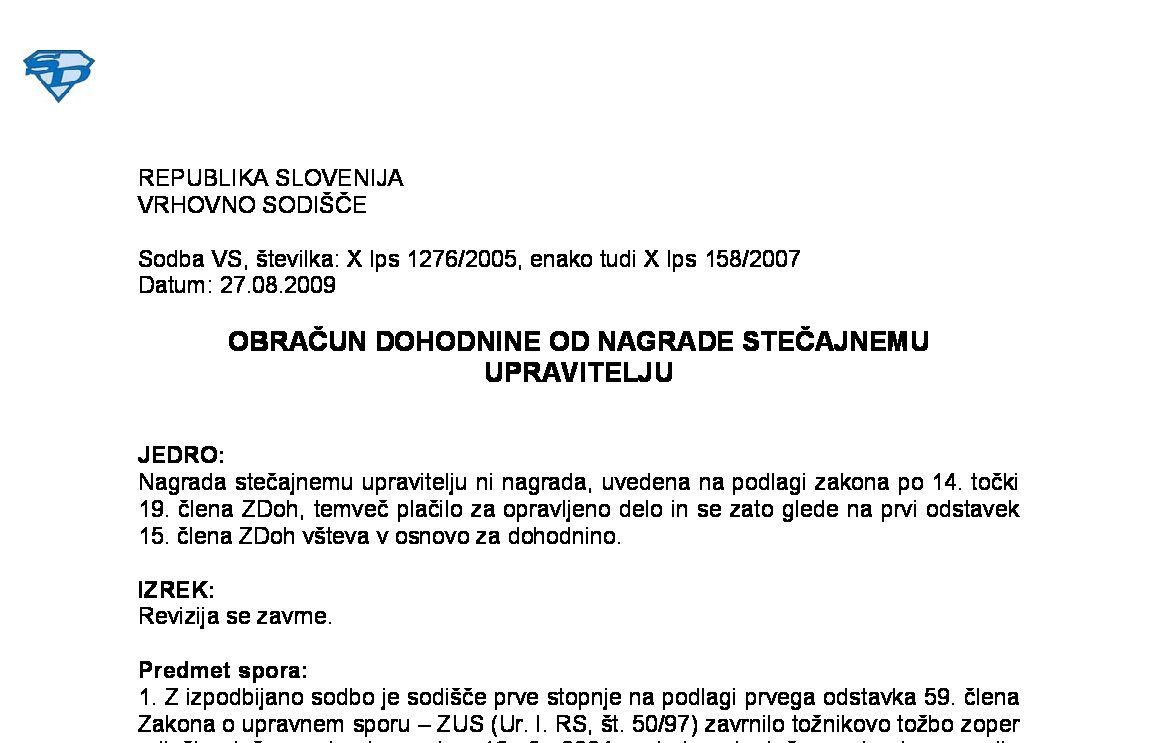 DELNI PRENOS PODJETJA ZASEBNIKA – Posebna davčna obravnava in prenehanjenadaljevanje opravljanja dejavnosti (starega) zasebnika (X Ips 22/2019) 04.12.2019 11.12.2025