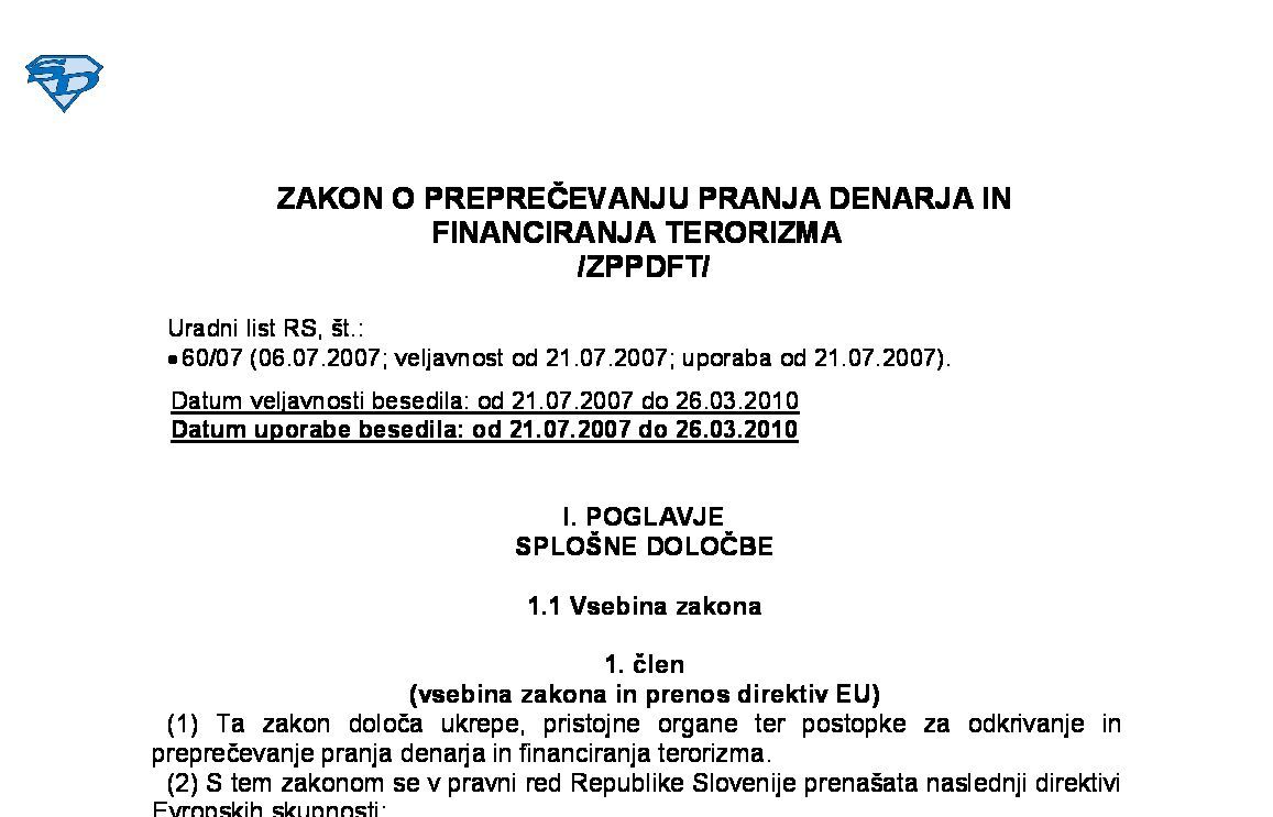 ZAKON O PREPREČEVANJU PRANJA DENARJA IN FINANCIRANJA TERORIZMA (ZPPDFT-2 - neuradno prečiščeno besedilo) 02.04.2025 [!] 08.08.2025 19.03.2025