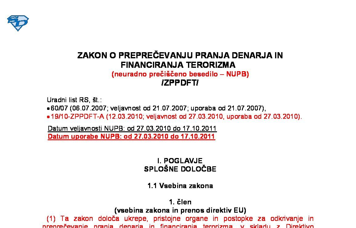 ZAKON O PREPREČEVANJU PRANJA DENARJA IN FINANCIRANJA TERORIZMA (ZPPDFT-2 - neuradno prečiščeno besedilo) 02.04.2025 [!] 08.08.2025 19.03.2025