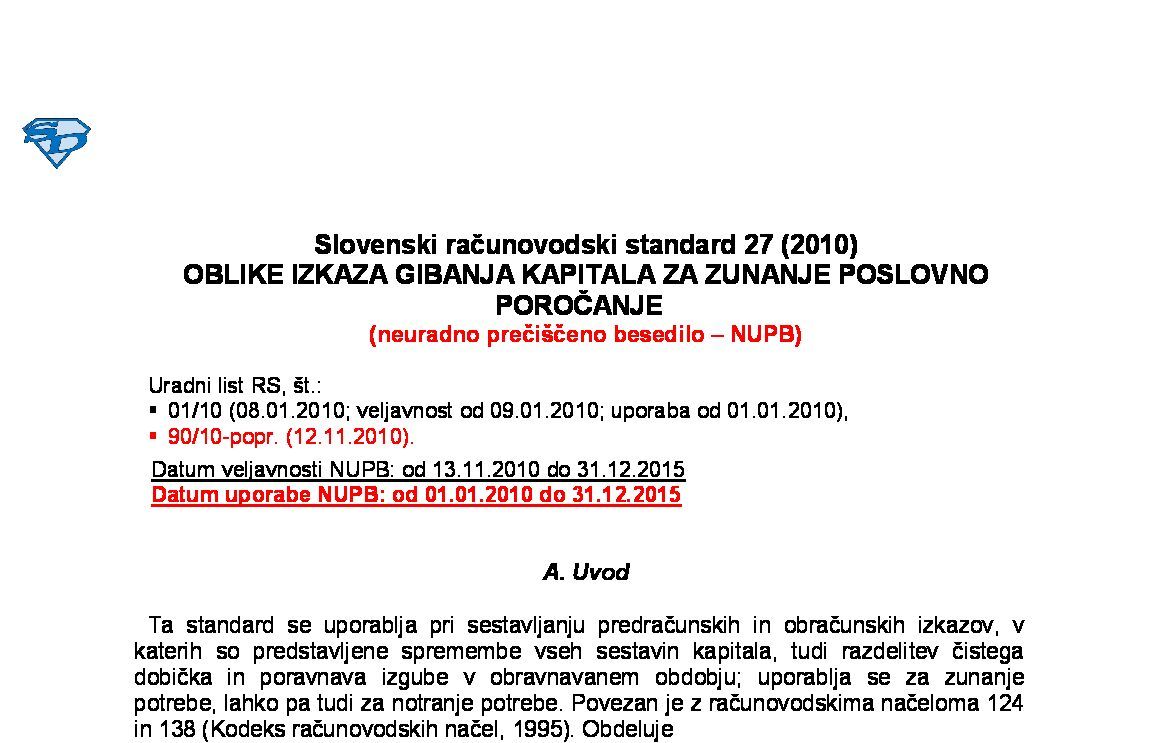 Organizacije z dnem začetka uporabe SRS 23 (2016) prenehajo uporabljati SRS 27 – Oblike izkaza gibanja kapitala za zunanje poslovno poročanje (2010).