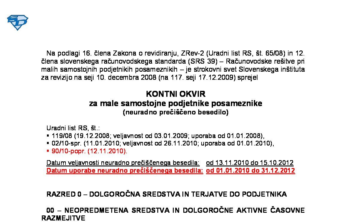 Enotni kontni ovir za gospodarske družbe, samostojne podjetnike posameznike, zadruge, nepridobitne organizacije – pravne osebe zasebnega prava ter društva in invalidske organizacije - SRS (2016) (neuradno prečiščeno besedilo) 01.01.2016 [!] 31.12.2023 11.01.2016