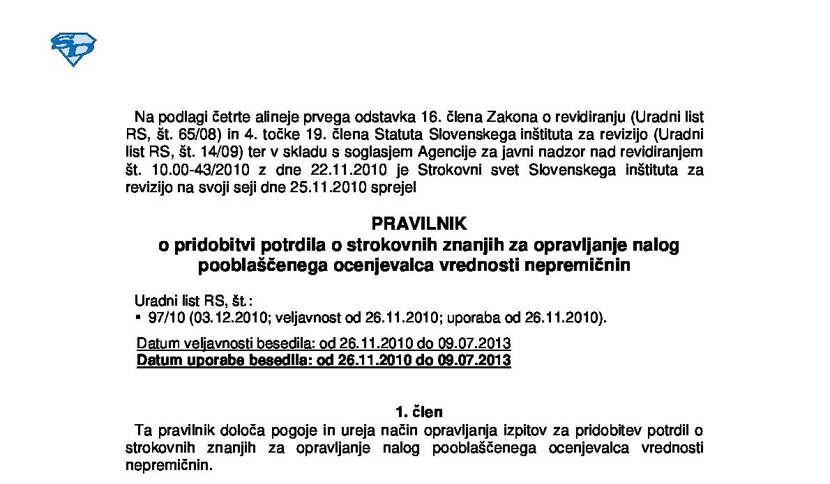 Pravilnik o pogojih za pridobitev potrdila o strokovnih znanjih za opravljanje nalog pooblaščenega revizorja, potrdila o strokovnih znanjih za opravljanje nalog dajanja zagotovil o trajnostnosti in obveznem praktičnem usposabljanju 22.02.2025 [!] 25.02.2025