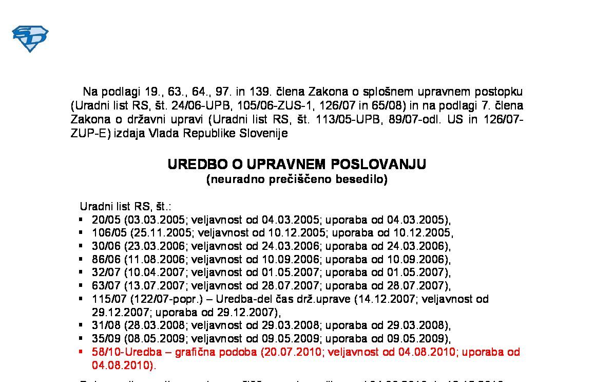| Uredba o upravnem poslovanju (NUPB - neuradno prečiščeno besedilo) | 06.04.2024 | 25.03.2024 | ||