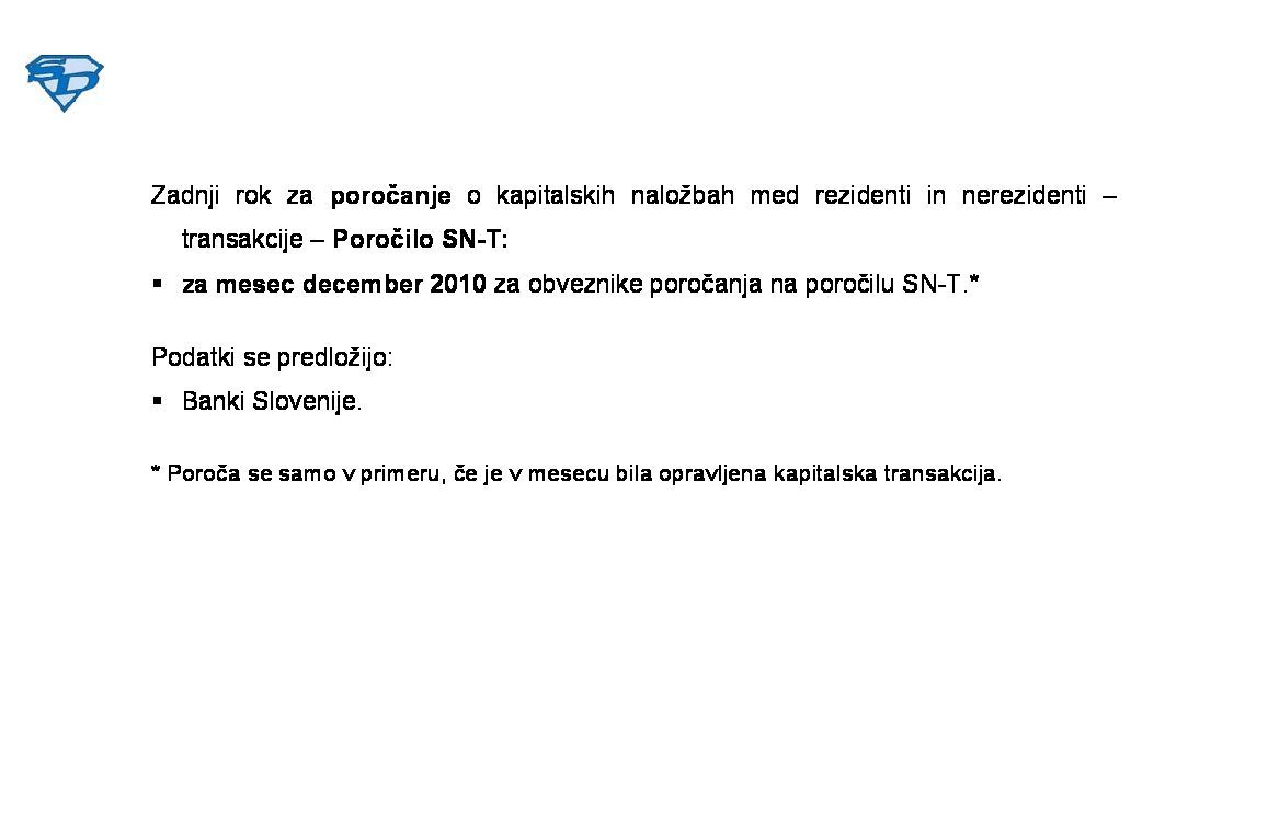Poročanje Banki Slovenije - mesečno poročilo o kapitalskih naložbah med rezidenti in nerezidenti - transakcije - SN-T 2025-12-20 00:00:00