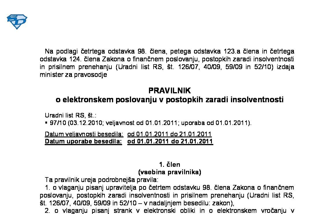 | Pravilnik o elektronskem poslovanju v postopkih zaradi insolventnosti | [!] | 04.02.2021 | ||