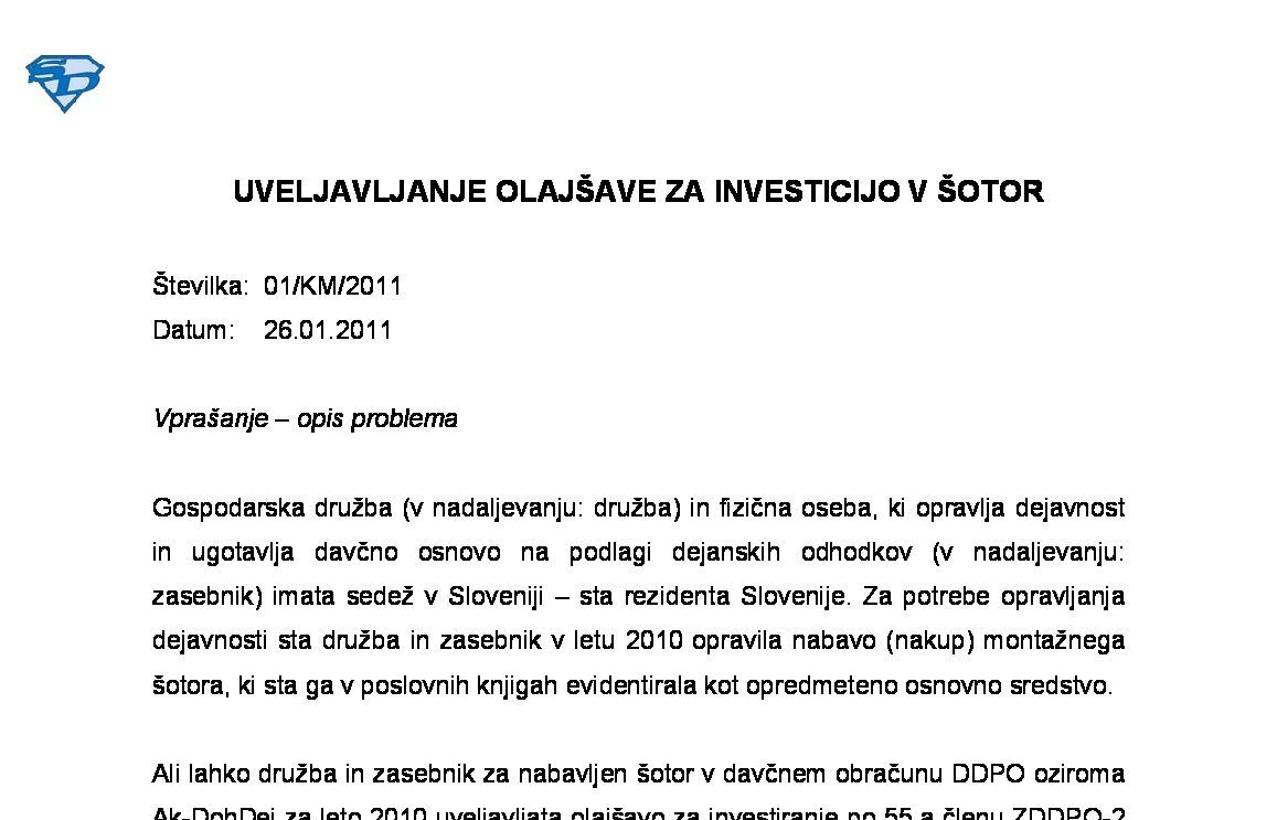 DDPO in DOHODNINA IZ DEJAVNOSTI Z UPOŠTEVANJEM DEJANSKIH ODHODKOV – Olajšava za investiranje – Uveljavljanje in koriščenje olajšave 30.10.2025 06.11.2025