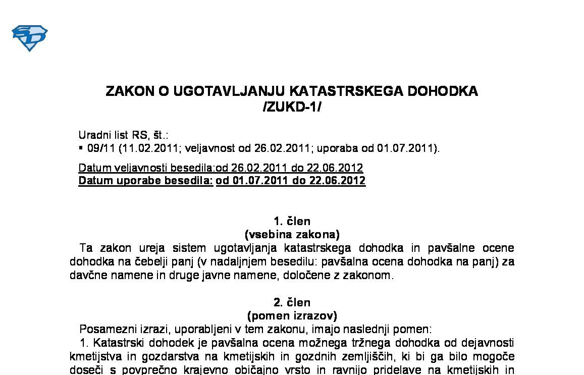 ZAKON O UGOTAVLJANJU KATASTRSKEGA DOHODKA (ZUKD-2) 01.01.2017 [!] 13.10.2016
