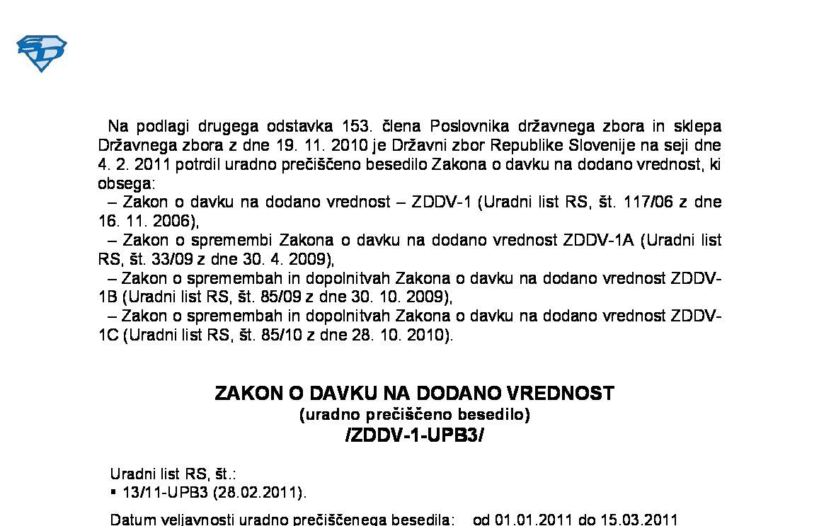 | ZAKON O DAVKU NA DODANO VREDNOST (ZDDV-1 - neuradno prečiščeno besedilo) | 01.01.2026 | [!] | 31.12.2025 | |