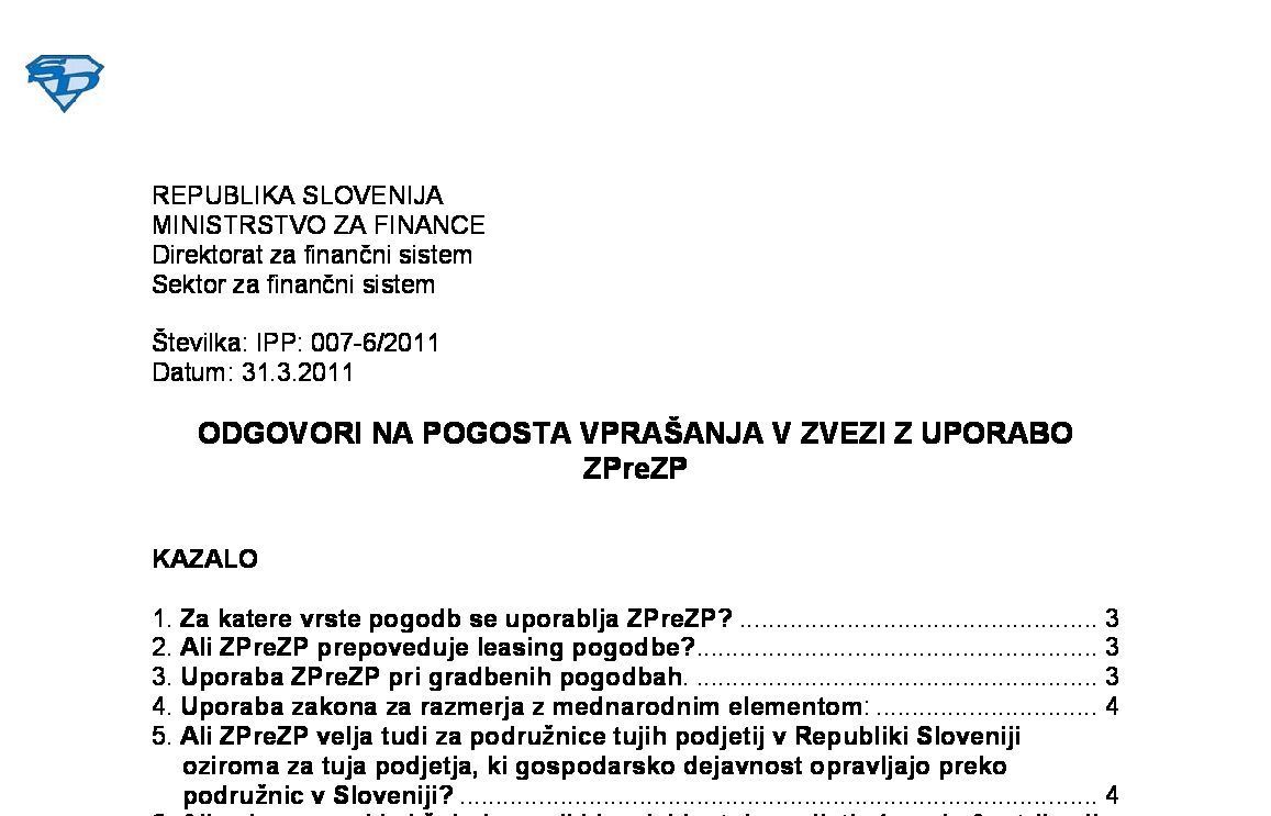 MF je pojasnilo (odgovore na vprašanja) v povezavi z uporabo ZPreZP kasneje še dopolnil - glej dopoljeno verzijo. |