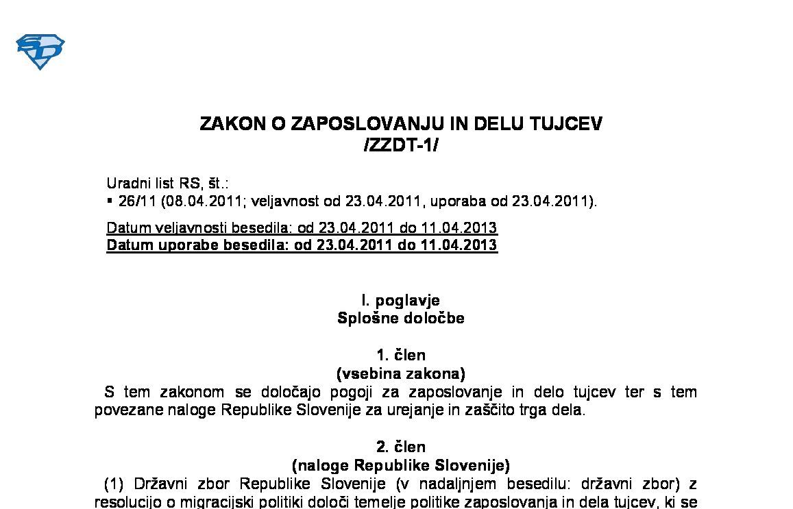 ZAKON O UREJANJU TRGA DELA (ZUTD - neuradno prečiščeno besedilo) 29.10.2025 [!] 29.10.2025