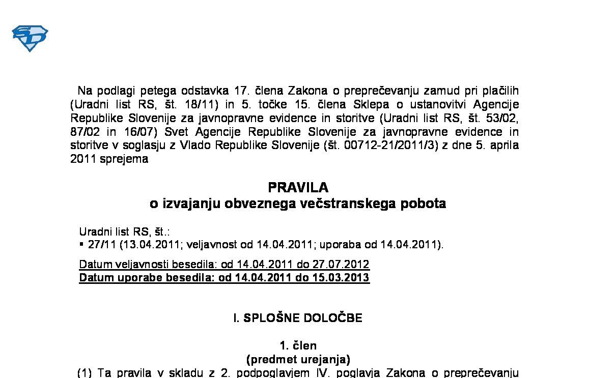 | Pravila o izvajanju obveznega večstranskega pobota (NUPB - neuradno prečiščeno besedilo) | 05.08.2023 | 01.08.2023 | ||