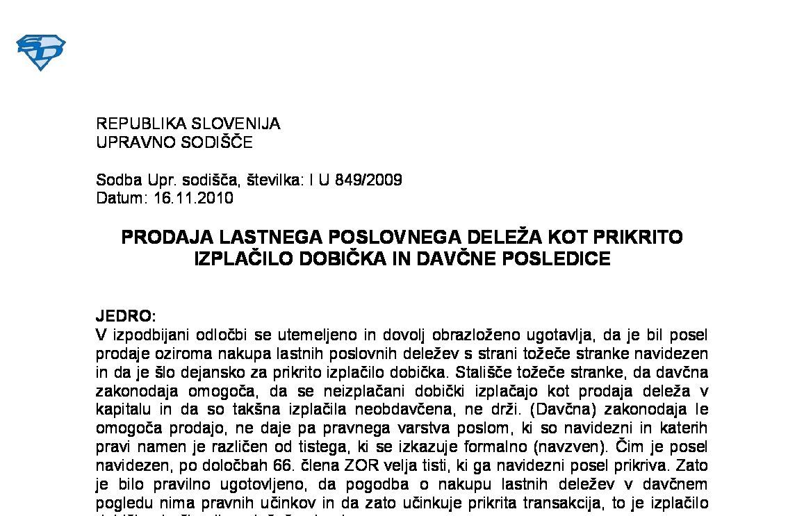 DDPO IN PREKLUZIJA DOKAZOV – Davčno priznan odhodek – Rezervacije – Prikrito izplačilo dobička (I U 652/2021-12) 15.07.2024 30.01.2025
