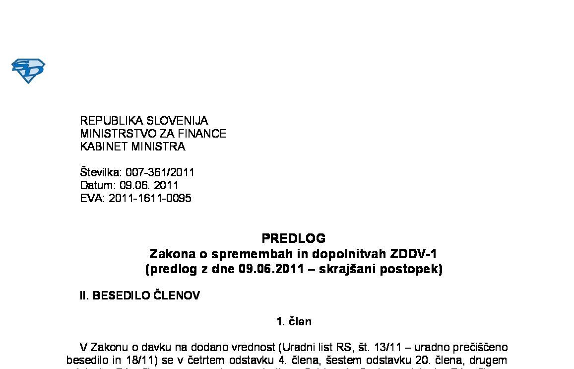 Članek nima posebnosti! Zakona o spremembah in dopolnitvah ZDDV-1 (predlog z dne 09.06.2011).pdf