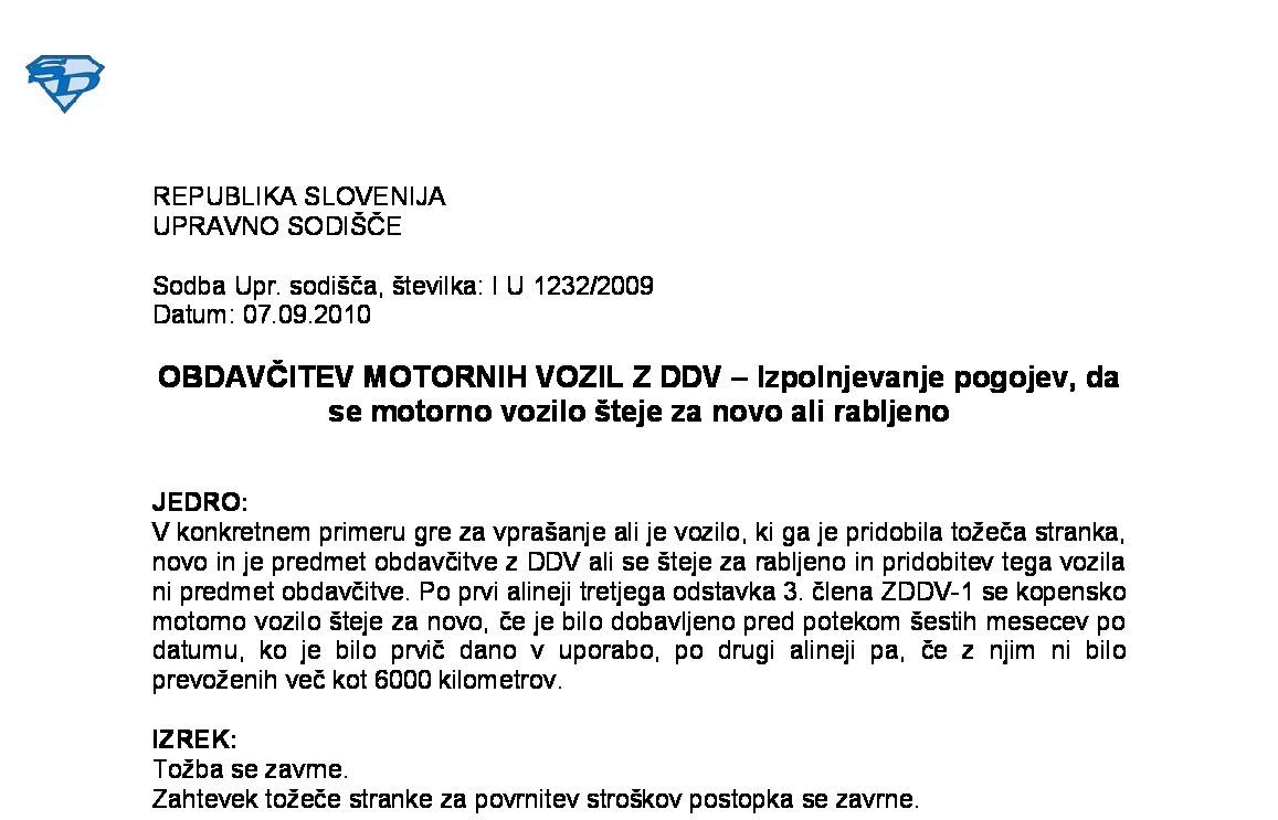 PRIDOBITEV VOZILA – PREDPLAČILO ZA PRIHODNJO PRODAJO VOZILA – Pridobitev novega ali rabljenega vozila (I U 1443/2022-29) 23.10.2024 19.03.2025