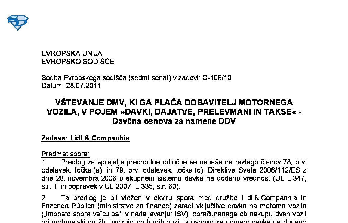 BREZPLAČNA PRAVNA POMOČ, KI JO ODVETNIK ZAGOTOVI STRANKI V SODNEM POSTOPKU – PLAČILO NAGRADE TEGA ODVETNIKA S STRANI PORAŽENE NASPROTNE STRANKE – Transakcije, ki so predmet DDV – Opravljanje storitev za plačilo (C-744/23) 23.10.2025 29.10.2025