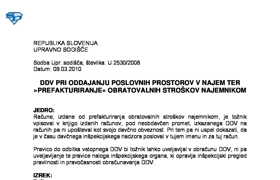 IZPOLNJEVANJE POGOJEV ZA DOBAVO BLAGA ZNOTRAJ UNIJE, OPROŠČENO PLAČILA DDV NA PODLAGI 46. ČLENA ZDDV-1 – Nepopolne CMR listine (I U 1704/2021-38) 27.11.2024 15.10.2025