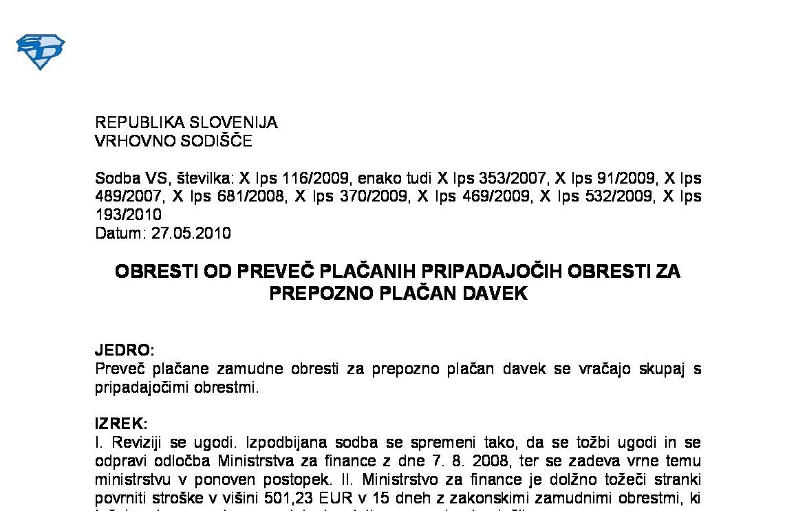 OBRAČUNAVANJE OBRESTI V POSTOPKU DAVČNEGA NADZORA (X Ips 123/2020) 28.08.2024 15.10.2024