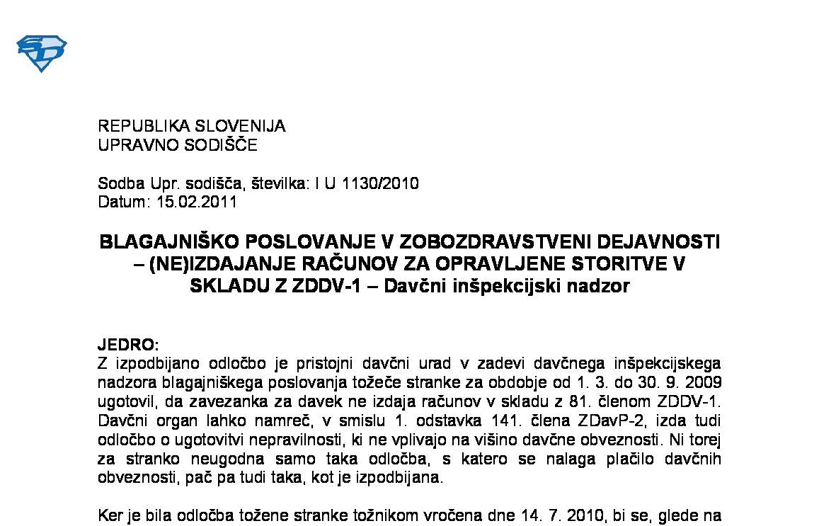 IZPOLNJEVANJE POGOJEV ZA DOBAVO BLAGA ZNOTRAJ UNIJE, OPROŠČENO PLAČILA DDV NA PODLAGI 46. ČLENA ZDDV-1 – Nepopolne CMR listine (I U 1704/2021-38) 27.11.2024 15.10.2025