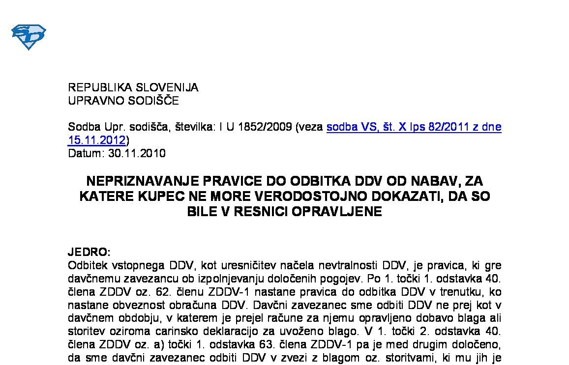 IZPOLNJEVANJE POGOJEV ZA DOBAVO BLAGA ZNOTRAJ UNIJE, OPROŠČENO PLAČILA DDV NA PODLAGI 46. ČLENA ZDDV-1 – Nepopolne CMR listine (I U 1704/2021-38) 27.11.2024 15.10.2025