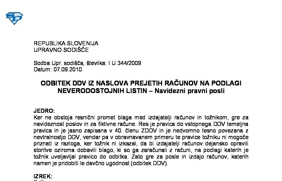 IZPOLNJEVANJE POGOJEV ZA DOBAVO BLAGA ZNOTRAJ UNIJE, OPROŠČENO PLAČILA DDV NA PODLAGI 46. ČLENA ZDDV-1 – Nepopolne CMR listine (I U 1704/2021-38) 27.11.2024 15.10.2025