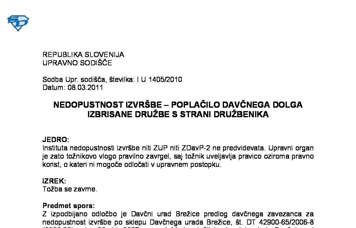 DIN IN IZDAJA POTRJENEGA RAČUNA – Ugotovitvena odločba – Pomanjkljiv izrek odločbe (I U 11/2023-13) 06.01.2025 11.07.2025