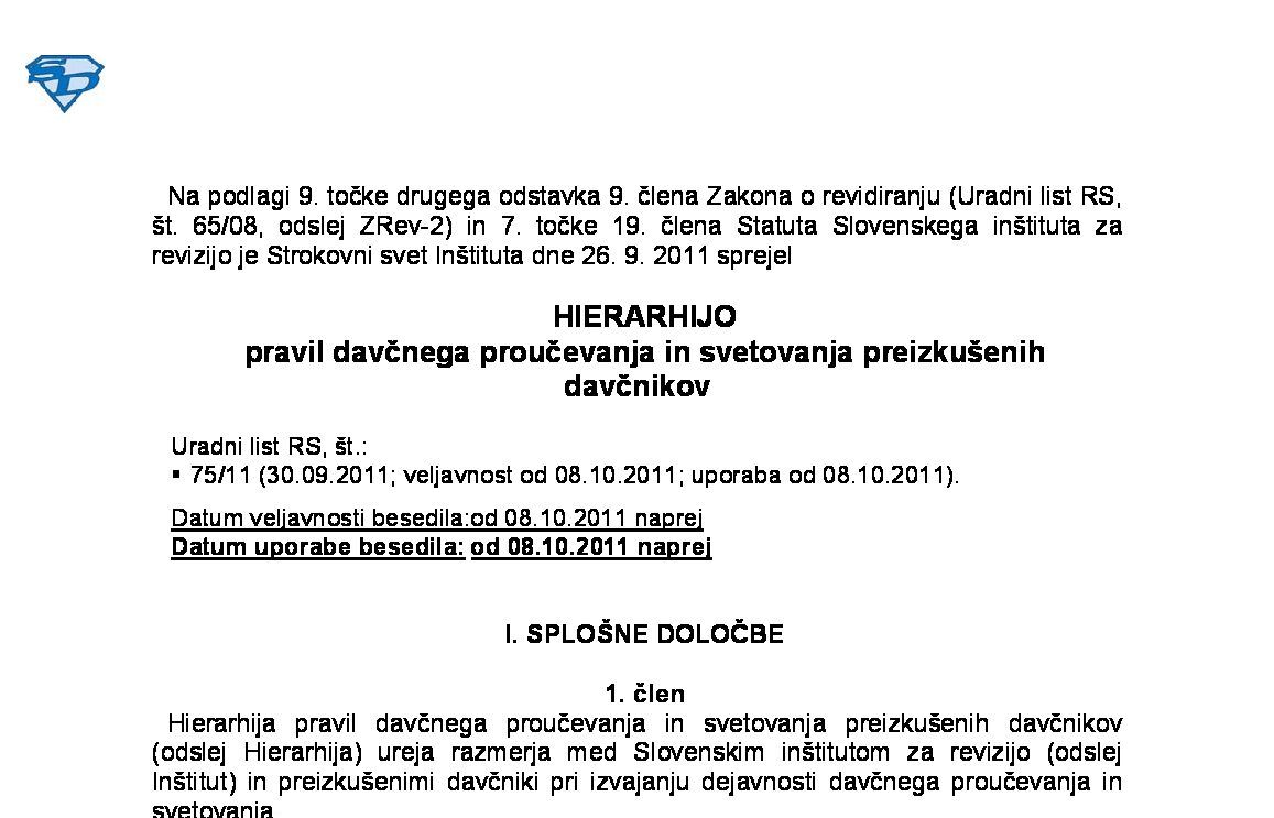 Hierarhija pravil notranjega revidiranja (NUPB - neuradno prečiščeno besedilo) 15.07.2025 03.09.2025