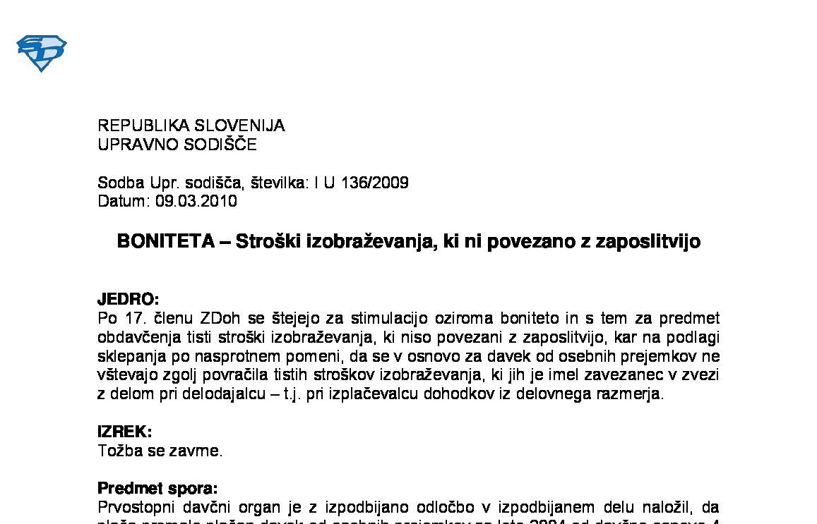 PREJEM POSLOVNEGA DELEŽA V DRUŽBI OB ANGAŽIRANJU PRI SANACIJI DRUŽBE – Darilo, ki se obdavčuje po ZDDD, ali dohodek obdavčen po ZDoh-2 (I U 1495/2022-13) 20.11.2024 10.07.2025