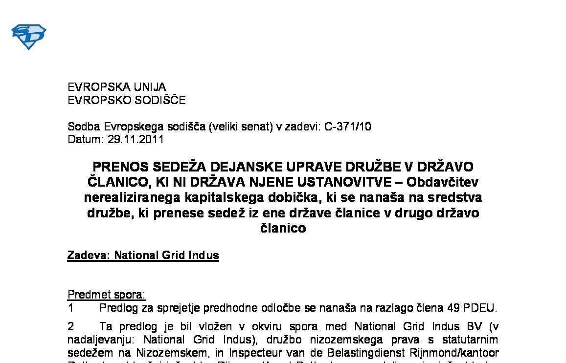 SKUPNI SISTEM OBDAVČITVE ZA ZDRUŽITVE, DELITVE, DELNE DELITVE, PRENOSE SREDSTEV IZ ZAMENJAVE KAPITALSKIH DELEŽEV – Delna delitev – Neobstoje zmanjšanja kapitala (C-318/22) 16.11.2023 18.04.2025