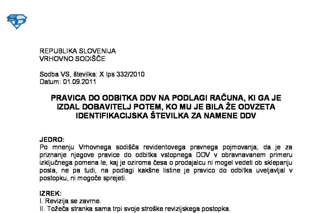 PRAVICA DO ODBITKA DDV – Dokazovanje obstoja goljufije na področju DDV s strani davčnega organa (X Ips 73/2021) 08.03.2023 13.06.2023