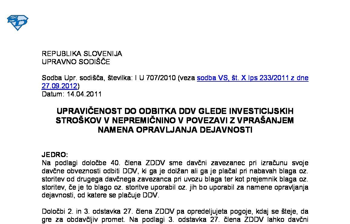 IZPOLNJEVANJE POGOJEV ZA DOBAVO BLAGA ZNOTRAJ UNIJE, OPROŠČENO PLAČILA DDV NA PODLAGI 46. ČLENA ZDDV-1 – Nepopolne CMR listine (I U 1704/2021-38) 27.11.2024 15.10.2025