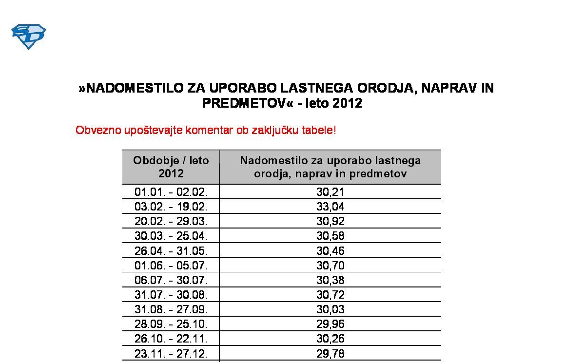 NADOMESTILO ZA UPORABO LASTNEGA ORODJA, NAPRAV IN PREDMETOV - leto 2024 26.11.2024