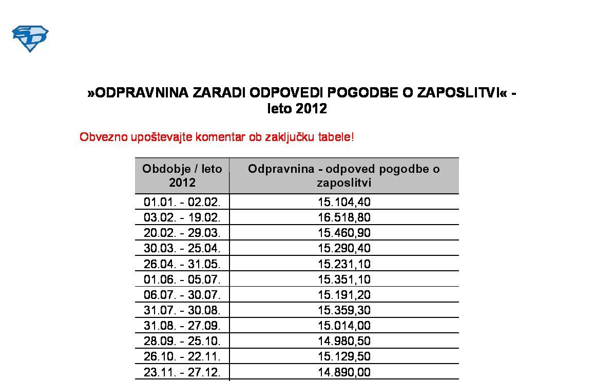 ODPRAVNINA ZARADI ODPOVEDI POGODBE O ZAPOSLITVI - leto 2024 28.11.2024