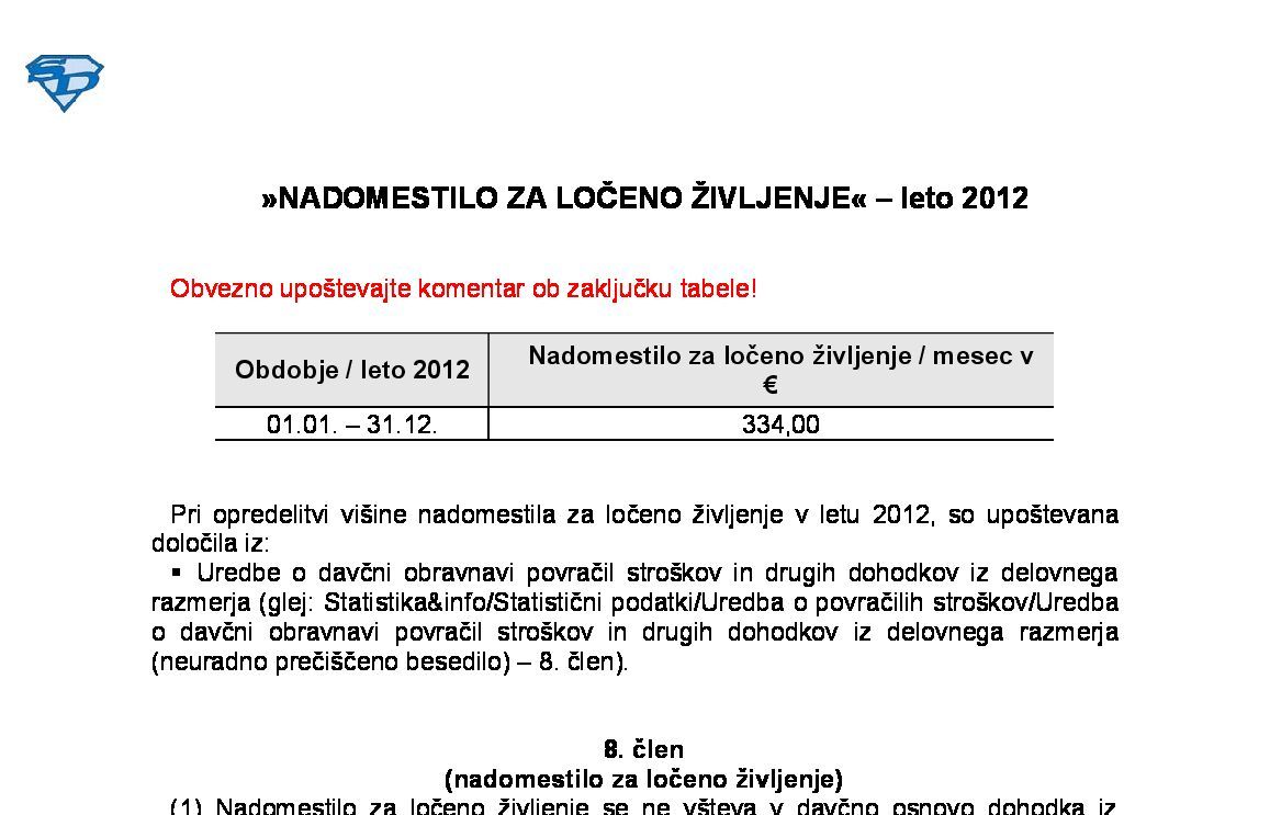 NADOMESTILO ZA LOČENO ŽIVLJENJE – leto 2021 12.01.2021
