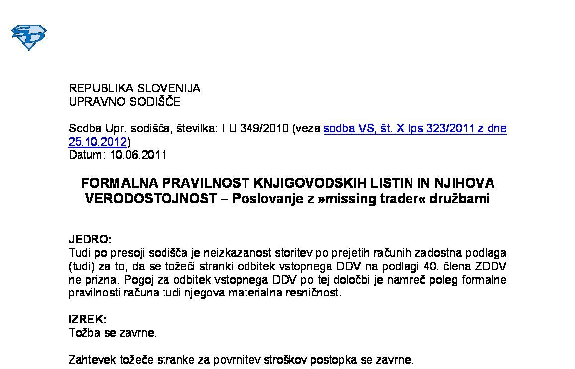 IZPOLNJEVANJE POGOJEV ZA DOBAVO BLAGA ZNOTRAJ UNIJE, OPROŠČENO PLAČILA DDV NA PODLAGI 46. ČLENA ZDDV-1 – Nepopolne CMR listine (I U 1704/2021-38) 27.11.2024 15.10.2025