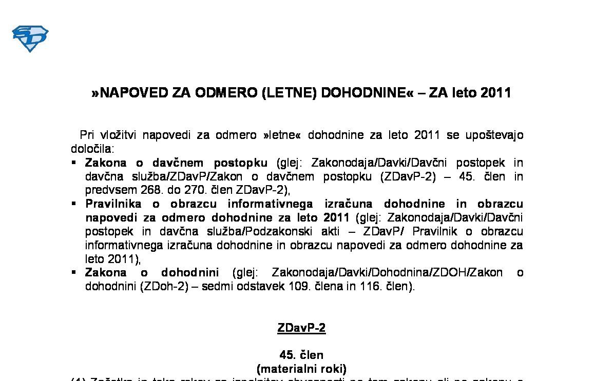 NAPOVED ZA ODMERO (LETNE) DOHODNINE – ZA leto 2025 21.01.2026