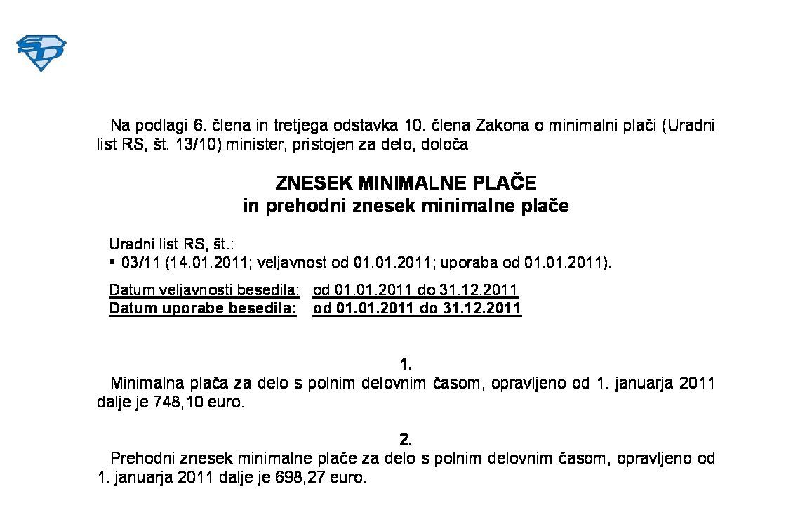 Za plače/plačilo za opravljeno delo od 01.01.2011 do 31.12.2011. Članek nima prilog!